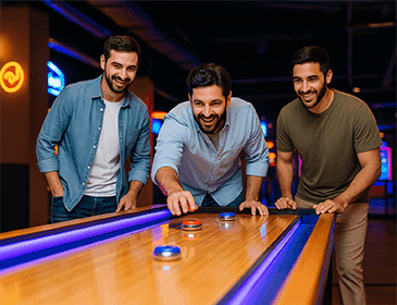 ادخل إلى ساحة اللعب الخاصة بالشلّة، حيث تجد ألعاب الأركيد، والبولينغ، والسهام، والرياضات المتعددة، والوجبات الخفيفة الرائعة، كل ذلك في مكان واحد. نضمن لك نتائج عالية، وضحكات مرتفعة، وأجواءً رائعة.