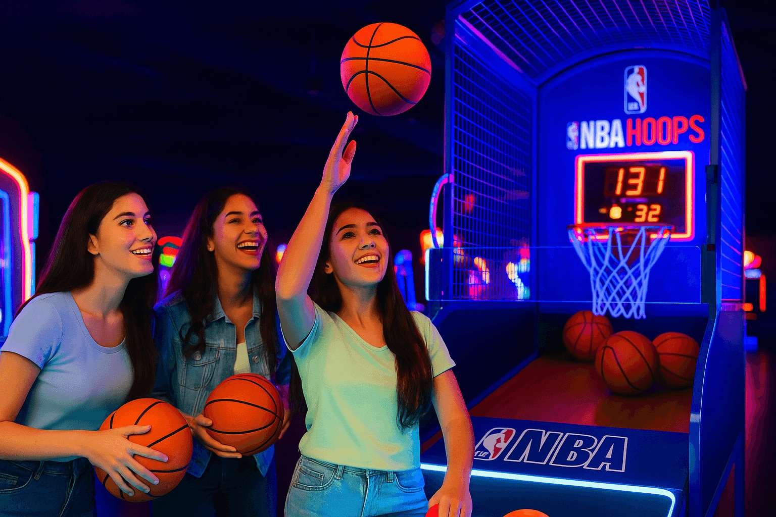 - الكرة الحقيقية والسلة المتحرّكة تجعلان كل محاولة مليئة بالإثارة.
