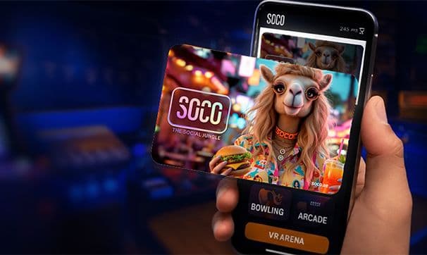 Grab a SOCO card , load credit once and use it across all 6 arcade games, drinks and snacks.