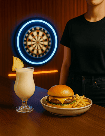 Whether you’re scoring points or waiting for your next turn, delicious bites are right beside you. Nachos, wings, salads and burgers keep everyone energized throughout the night. Play, eat and repeat — it’s the perfect combo for families and friends.