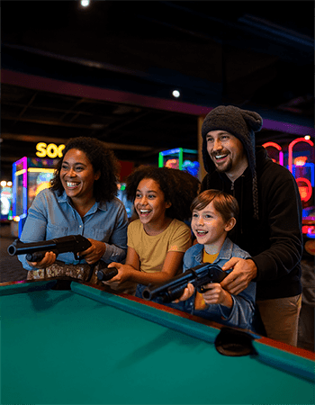 Whether you’re scoring points or waiting for your next turn, delicious bites are right beside you. Nachos, wings, salads and burgers keep everyone energized throughout the night. Play, eat and repeat — it’s the perfect combo for families and friends