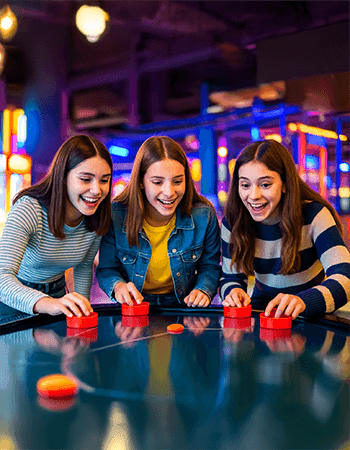 Fast, furious and impossible to play quietly. Get ready for fast-paced fun with Air Hockey, the ultimate showdown for adults. Battle it out in 2 or 4-player mode, perfect for competitive nights out — score, laugh and keep the puck flying!